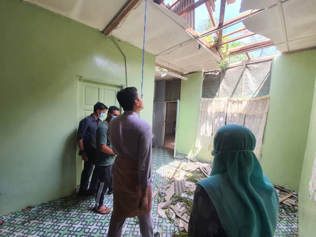 Dalam kejadian pada 18 Ogos lalu kira-kira jam 6 petang itu, mangsa Mohd Azmin Abdul Aziz bersama tiga ahli keluarganya terselamat apabila rumahnya dihempap sebuah pokok sehingga mengakibatkan keseluruhan atap dari bahagian ruang tamu dan dapur rosak.-PAHANGMEDIA