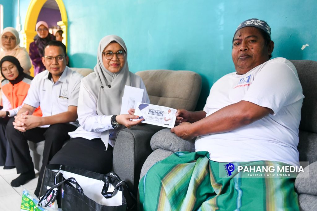 BERA, 15 MAC 2025 : Pesakit kronik di daerah ini bersyukur menerima bantuan daripada Kerajaan Negeri menerusi program Ziarah Kasih sempena Moh Karnival Makmur peringkat daerah Bera yang berlangsung di Felda Rentam, hari ini.