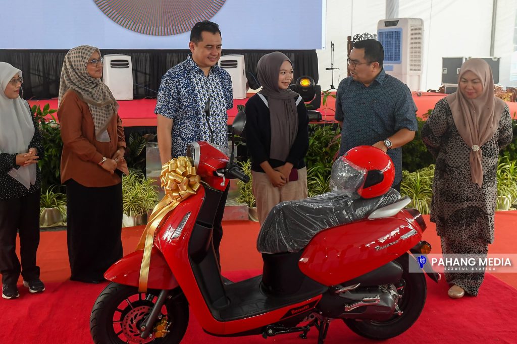 Turut hadir, Pengerusi Jawatankuasa Kebajikan Masyarakat, Pembangunan Wanita dan Keluarga Negeri Pahang, YB. Dato’ Hajah Sabariah Saidan; dan Pengerusi Jawatankuasa Hal Ehwal FELDA, Koperasi dan Usahawan Negeri Pahang, YB. Dato’ Amizar Abu Adam.