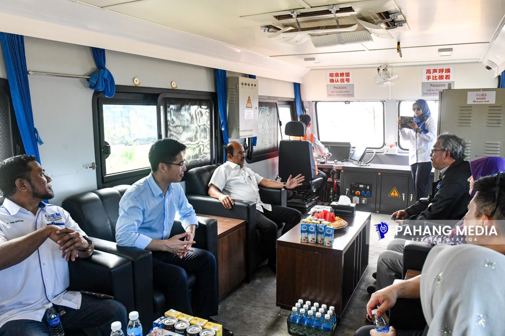 Beliau dalam lawatan tersebut turut menaiki tren dari stesen Gebeng ke KotaSAS dan kembali ke Gebeng bersama Naib Presiden The Institution of Engineers, Malaysia (IEM), Ir. Prof. Dr. Tan Chee Fai; Naib Presiden IEM, Dato’ Ir. Wan Nazari Wan Jusoh; Pengerusi IEM Pahang, Ir. Harzah Masni Ramli; Naib Pengerusi 1 IEM Pahang, Ir. Dr. Azhani Zukri; IEM Terengganu, Ir. Zahid Suffian; IEM Kelantan, Ir. Che Sufian Che Hussin; dan Pengurus Besar China Communication Construction (CCC), Encik Dang Yayun. -PAHANGMEDIA
