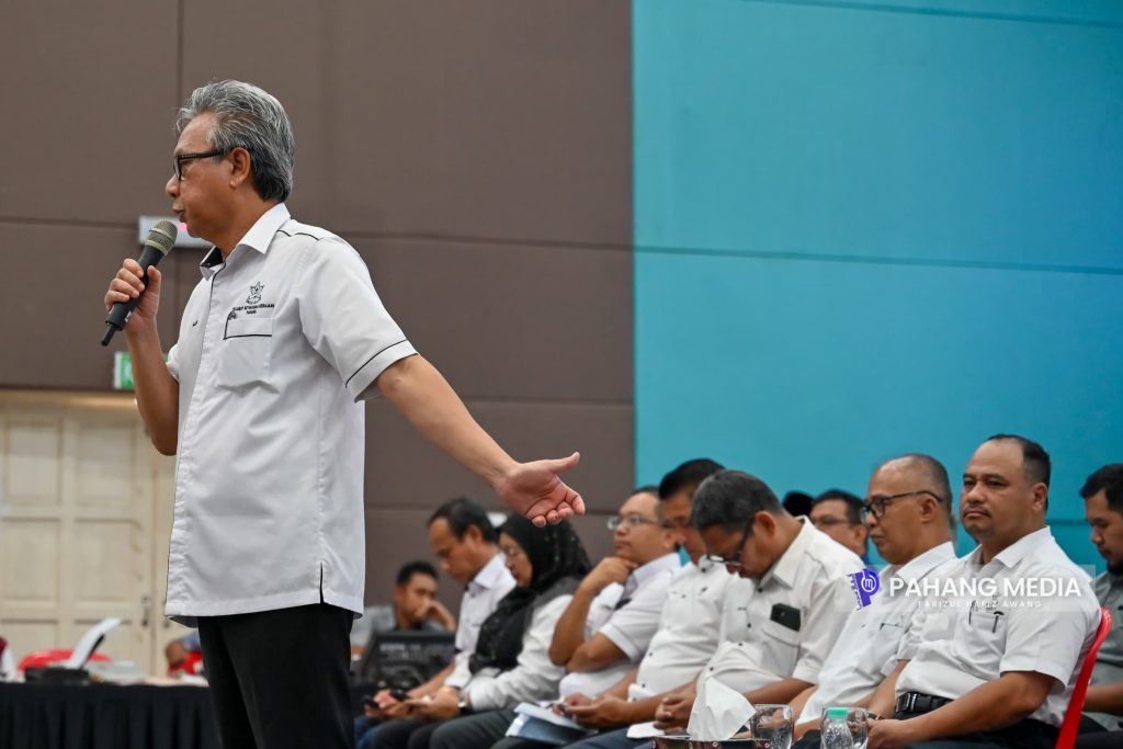 “Jadi perkara ini diharap terutama ketua-ketua kampung, ketua-ketua jabatan yang berada di daerah dan seluruh pentadbiran negeri Pahang ini menjadi perantara antara kerajaan dan rakyat…teruskan main peranan.