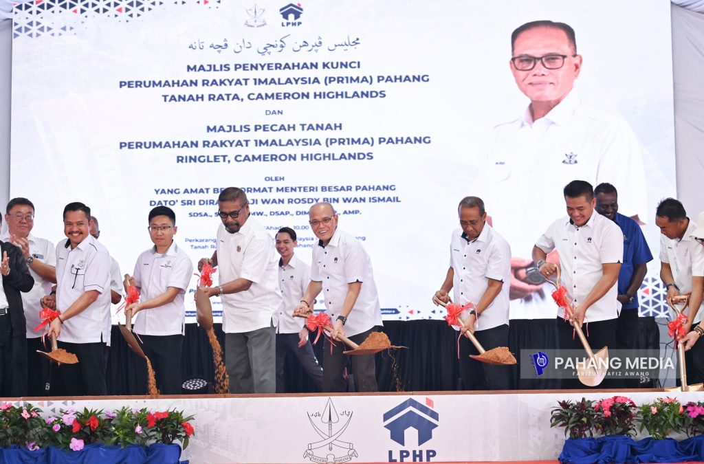 YAB. Dato’ Sri Diraja Haji Wan Rosdy dalam masa sama turut menyempurnakan Majlis Pecah Tanah PR1MA Pahang Ringlet di mana sebanyak 240 unit rumah melibatkan dua block pangsapuri tujuh tingkat sedang dalam pembinaan dan dijangka siap pada Julai nanti.