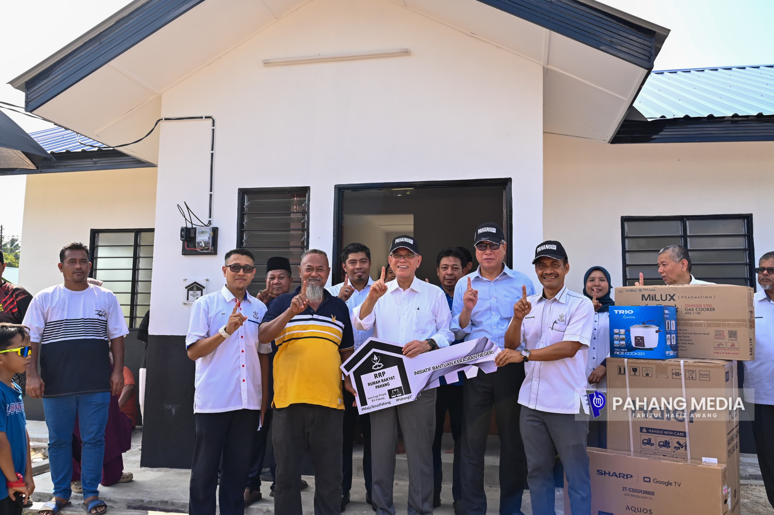 Turut hadir YB Setiausaha Kerajaan Pahang, Dato’ Sri Nazri Abu Bakar, ketua-ketua jabatan kerajaan negeri dan barisan kepimpinan setempat. Seramai lima keluarga di kampung berkenaan menerima replika kunci RRP hari ini.