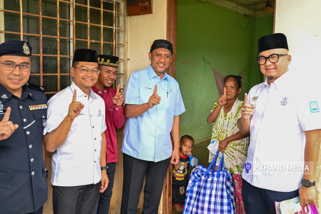 “Alhamdulillah, hari ini kita berjaya menyantuni saudara kita di sini kampung ini, kita menziarahi rumah ke rumah, kita memberi sumbangan kepada orang asli yang memerlukan di bawah I.M Pahang (Inisiatif Makmur Pahang).