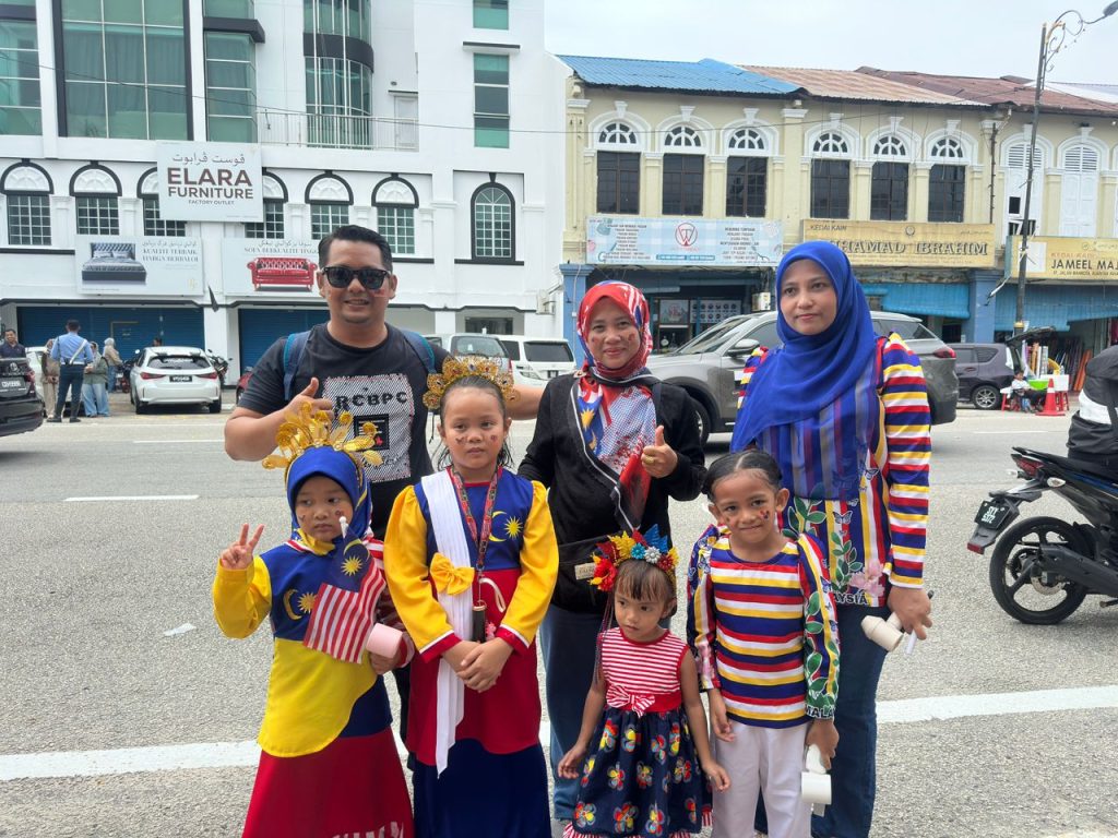 Bagi Encik Nazarudin Deman, 35, dari Kemaman, suasana sambutan tahun ini amat meriah dan berjaya menyemarakkan semangat anak-anaknya untuk meraikan Hari Kebangsaan dengan mengenakan pakaian bertemakan Jalur Gemilang.
