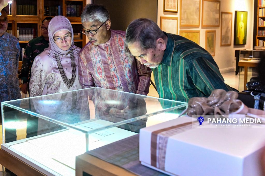 Paduka Baginda turut berkenan menyempurnakan perasmian pameran baharu yang akan mempamerkan hasil karya seni Yang Amat Mulia Tengku Puteri Raja Tengku Puteri Jihan Azizah ‘Athiyatullah.