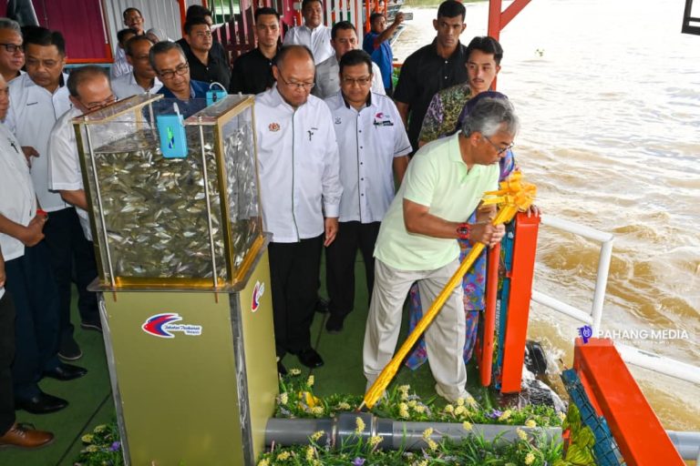 Majlis turut diserikan dengan keberangkatan Paduka Baginda melepaskan sebanyak 150,300 benih ikan pelbagai spesies ke Sungai Pahang termasuk udang galah, lampam sungai, patin buah, baung dan terbul.-PAHANGMEDIA