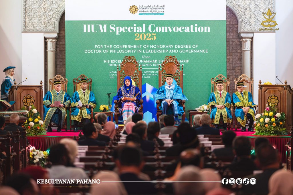 KUALA LUMPUR, 7 OKTOBER 2025 : Kebawah Duli Paduka Baginda Tengku Ampuan Pahang Tunku Azizah Aminah Maimunah Iskandariah Binti Almarhum Sultan Iskandar Al-Haj berkenan menyempurnakan penganugerahan Ijazah Kehormat Doktor Falsafah (Kepimpinan dan Tadbir Urus) kepada Perdana Menteri Republik Islam Pakistan, Tuan Yang Terutama Muhammad Shehbaz Sharif.