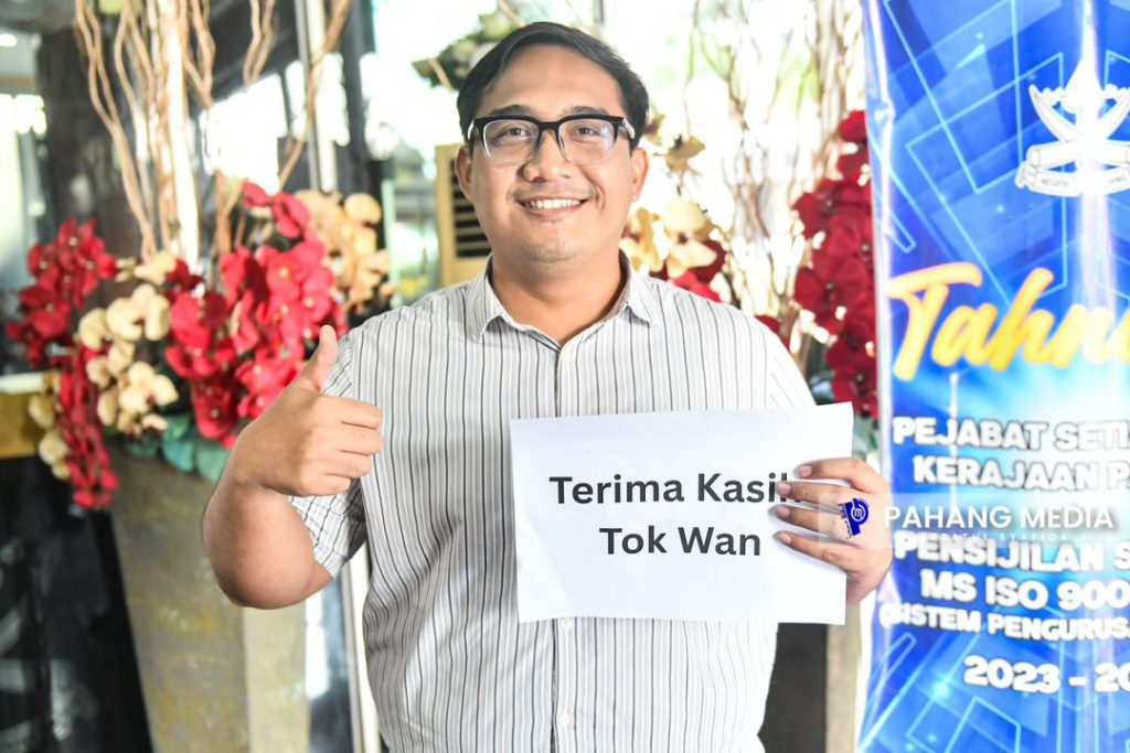 “Terima kasih Dato’ Sri Diraja Haji Wan Rosdy Wan Ismail diatas pengumuman bajet sebentar tadi. Penjawat awam Negeri Pahang mendapat bonus dua bulan gaji.