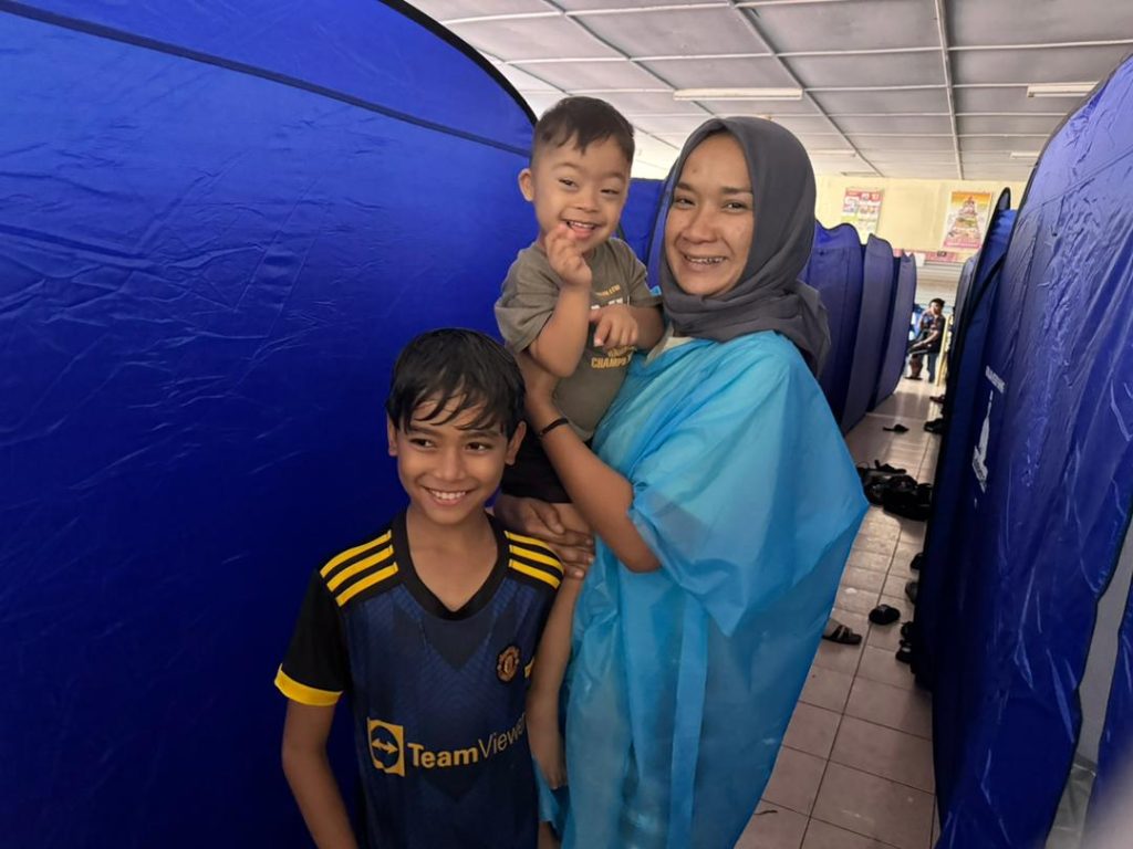 “Kami tiga keluarga. Kami dapat dua khemah untuk tiga keluarga. Alhamdulillah cukup (muat),” katanya.