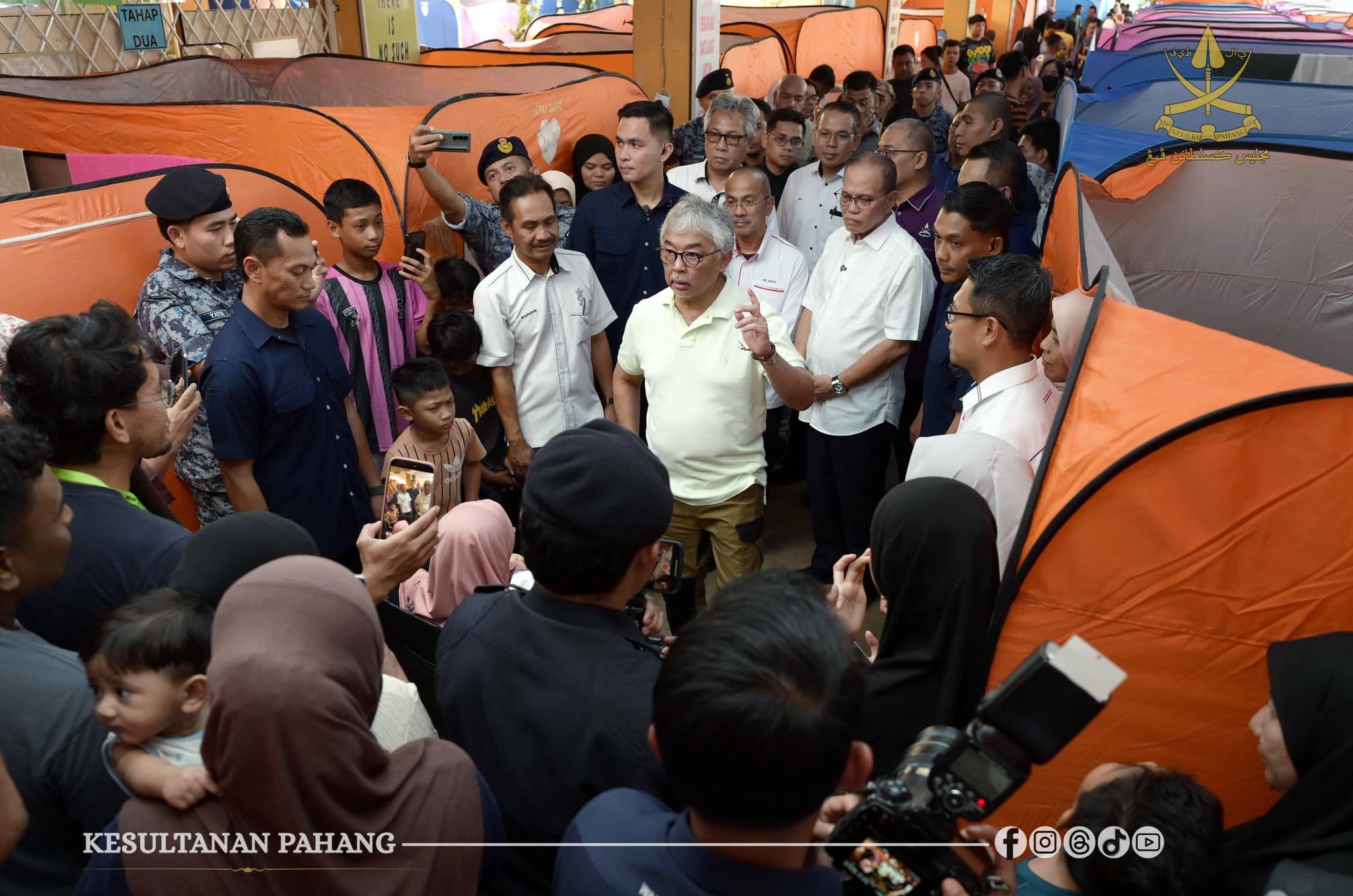 KUANTAN 21 DISEMBER 2025 : Kebawah Duli Paduka Baginda Sultan Pahang, Al-Sultan Abdullah Ri’ayatuddin Al-Mustafa Billah Shah Ibni Almarhum Sultan Haji Ahmad Shah mengingatkan semua mangsa banjir yang ditempatkan di Pusat Pemindahan Sementara (PPS) agar tidak tergesa-gesa pulang ke rumah masing-masing berikutan terdapat kemungkinan berlakunya gelombang kedua dalam masa terdekat.