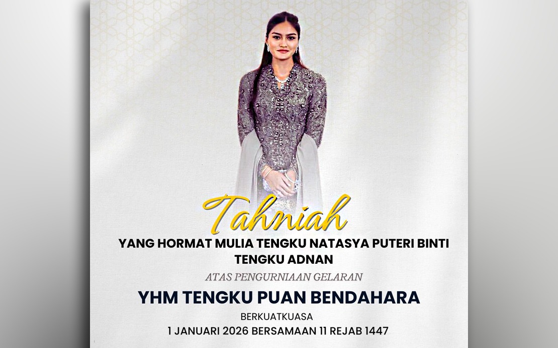 KUANTAN, 01 JANUARI 2026 : Kebawah Duli Paduka Baginda Sultan Pahang Al-Sultan Abdullah Ri’ayatuddin Al-Mustafa Billah Shah Ibni Almarhum Sultan Haji Ahmad Shah berkenan mengurniakan gelaran Tengku Puan Bendahara kepada Tengku Natasya Puteri Tengku Adnan.