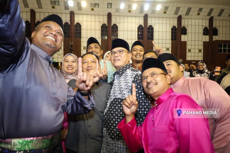 ROMPIN, 15 APRIL 2026 : Majlis Rumah Terbuka Aidilfitri Dewan Undangan Negeri (DUN) Muadzam Shah yang berlangsung di Dewan Besar DARA, di sini malam tadi, mendapat sambutan luar biasa apabila lebih 5,000 pengunjung membanjiri lokasi seawal jam 8 malam.