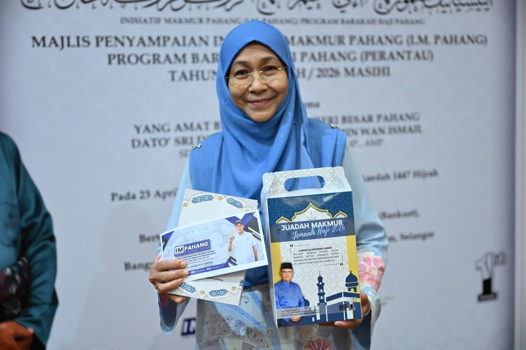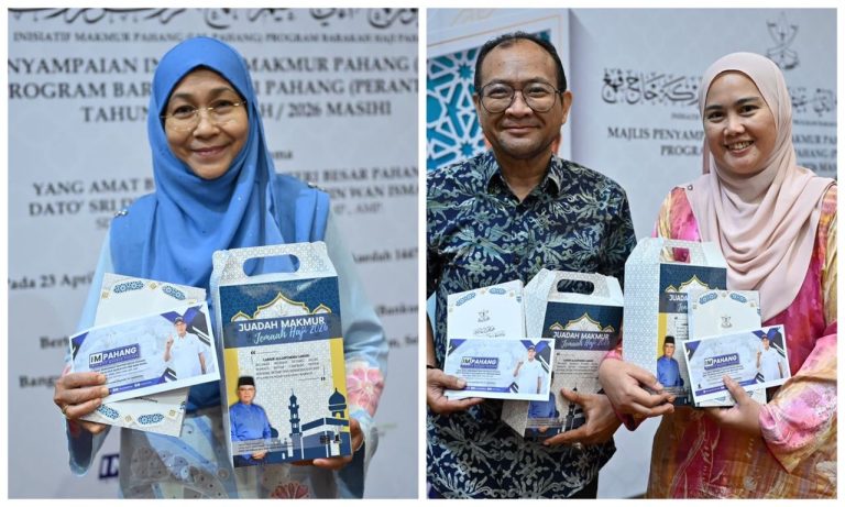 SHAH ALAM, 23 APRIL 2026 : “Macam kita ni perantau, kita tengok. Selangor kita tak boleh minta, Pahang kita tak tahu pun sebab kita dah merantau lama. Jadi tiba-tiba dapat panggilan tu, eh syukurnya,” kongsi penerima Inisiatif Makmur Pahang Barakah Haji Kluster Anak Perantauan Pahang, Puan Aine Jamaliah Mohamad Zain.