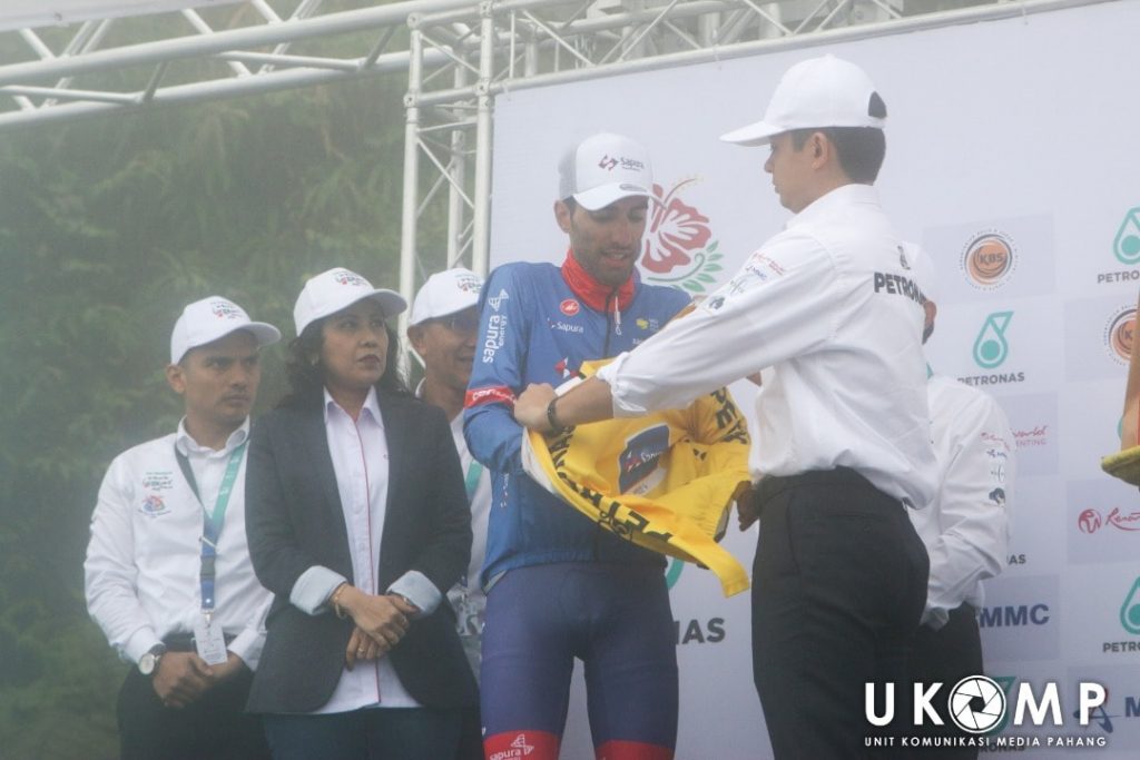 Baginda turut menyarungkan jersi kuning (pendahulu keseluruhan) kepada pelumba Vino Astana Motor, Yevgeniy Fedorov selepas menamatkan kayuhan sejauh 124.7 kilometer itu.