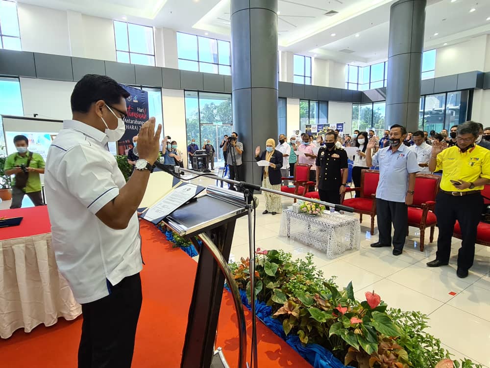 Yang Dipertua MPK, YH. Dato’ Hamdan Hussin mengetuai lafaz ikrar pada Program Hari Anti Rasuah Antarabangsa (HARA) 2020 di Kompleks Ibu Pejabat MPK.