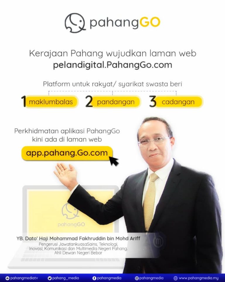 Beliau berkata, PahangGo Sdn Bhd juga telah membangunkan laman web iaitu app.PahangGo.com yang menempatkan perkhidmatan sama seperti di aplikasi mobile PahangGo.