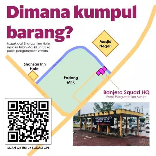 “Justeru orang ramai boleh menghantar pelbagai barangan antaranya seperti air mineral botol kecil, tuala wanita, seluar dalam wanita, susu bayi, pakai buang, makanan kering, beras, kopi, sardin, mi segera, panadol, minyak angin dan pakaian terpakai (wajib diasing).