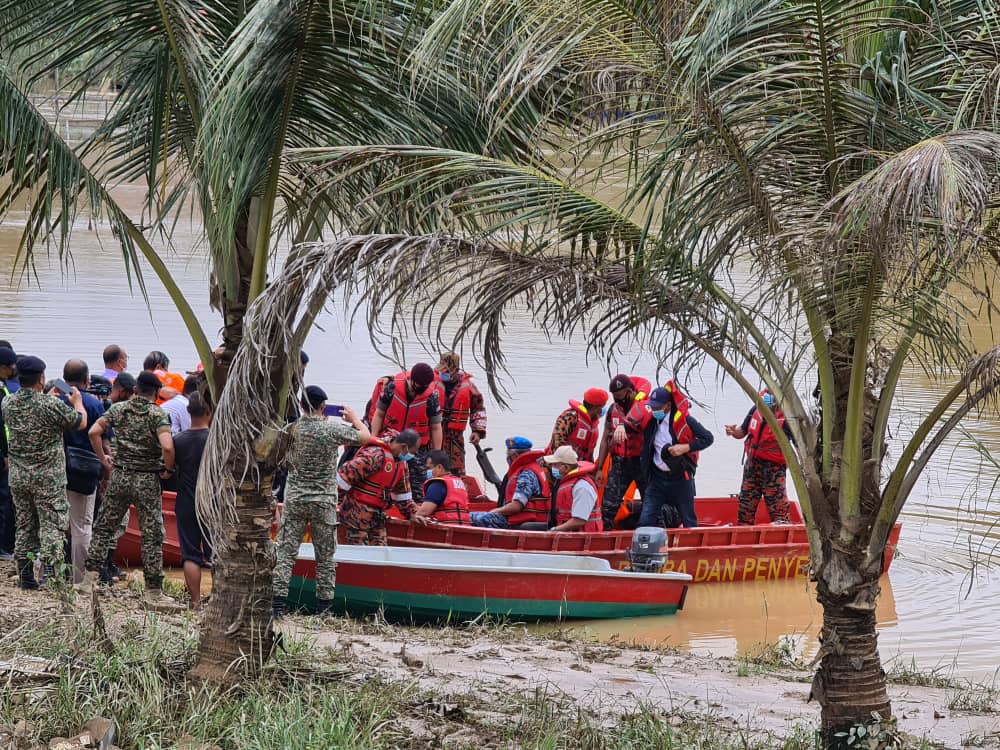 Selesai pengurniaan sumbangan dan menziarah kesemua mangsa di dua PPS terbabit, Seri Paduka kemudian berangkat melawat kesan banjir di daerah Lipis sebelum menaiki bot menuju ke Kampung Binjai, di sini, yang masih lagi tenggelam dan kesemua penduduk di kampung terbabit terputus hubungan kerana jambatan yang menghubungkan mereka masih ditenggelami air. – PAHANGMEDIA